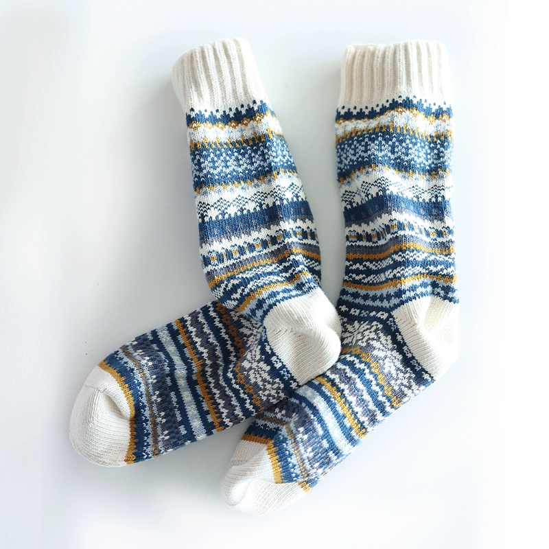 جوارب Beeff Snowflake ذات الطراز العرقي من القطن الدافئ بخيوط سميكة