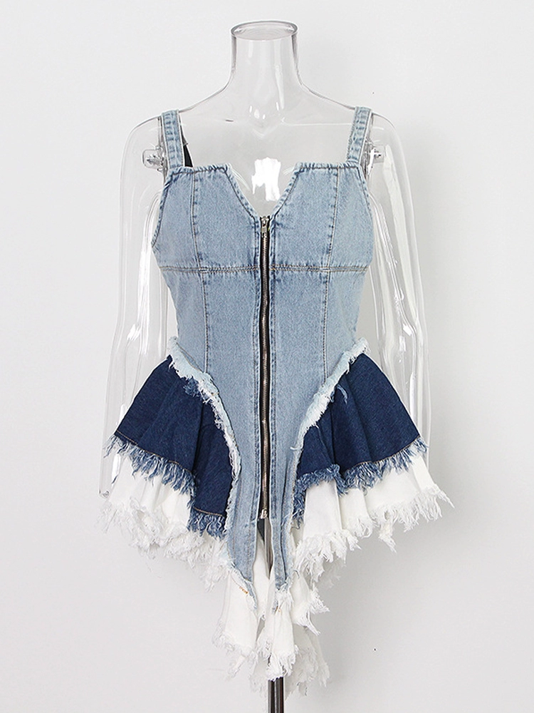 حمالات الدنيم الرجعية فضفاضة الدهون مم أنبوب أعلى اللباس