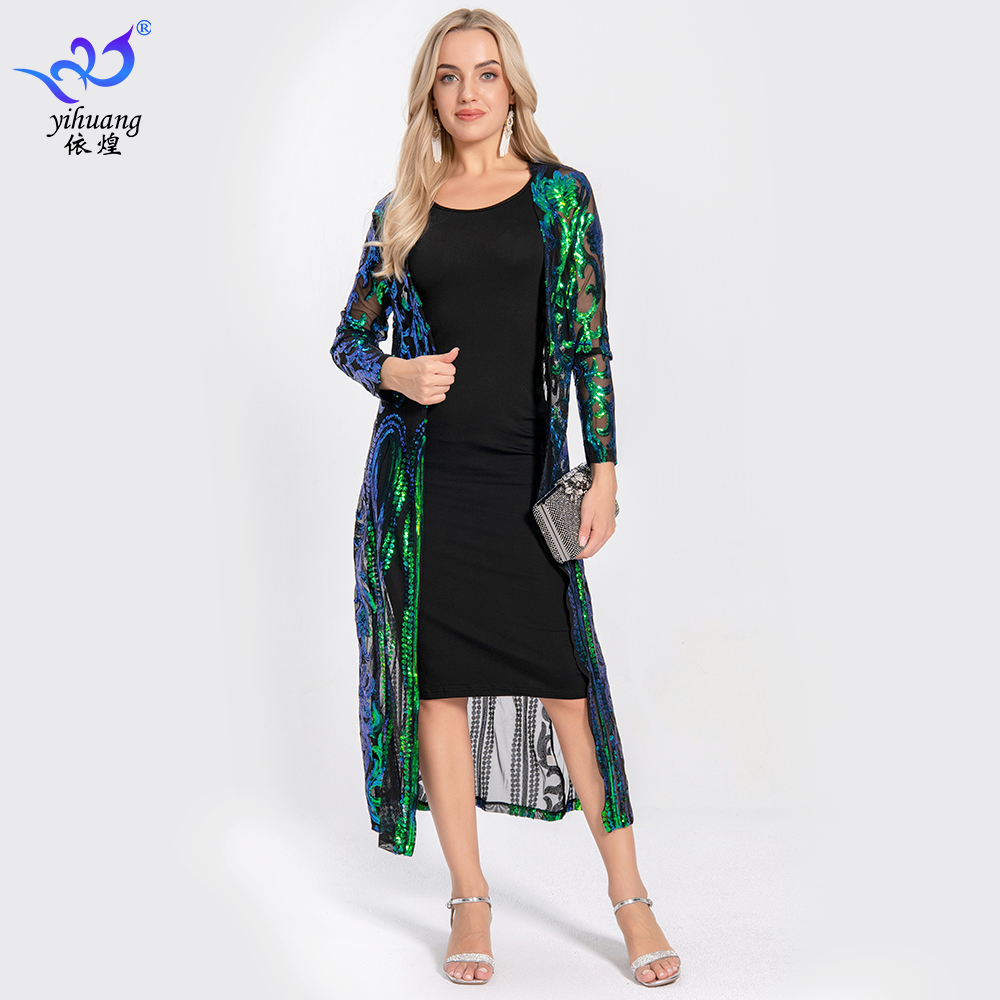 معطف طويل من الدانتيل والترتر على شكل شال أوروبي وأمريكي