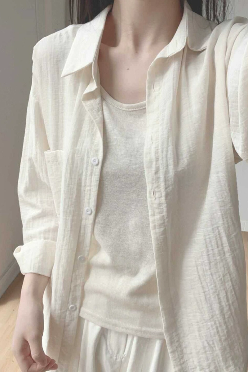 قميص قصير بدون أكمام برقبة على شكل حرف U على الطراز الكوري
