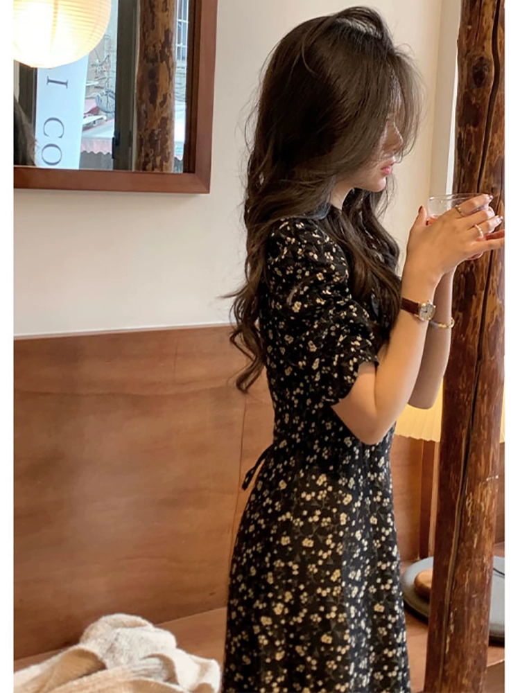 فستان صيفي نسائي من الشيفون باللون الأسود الفرنسي