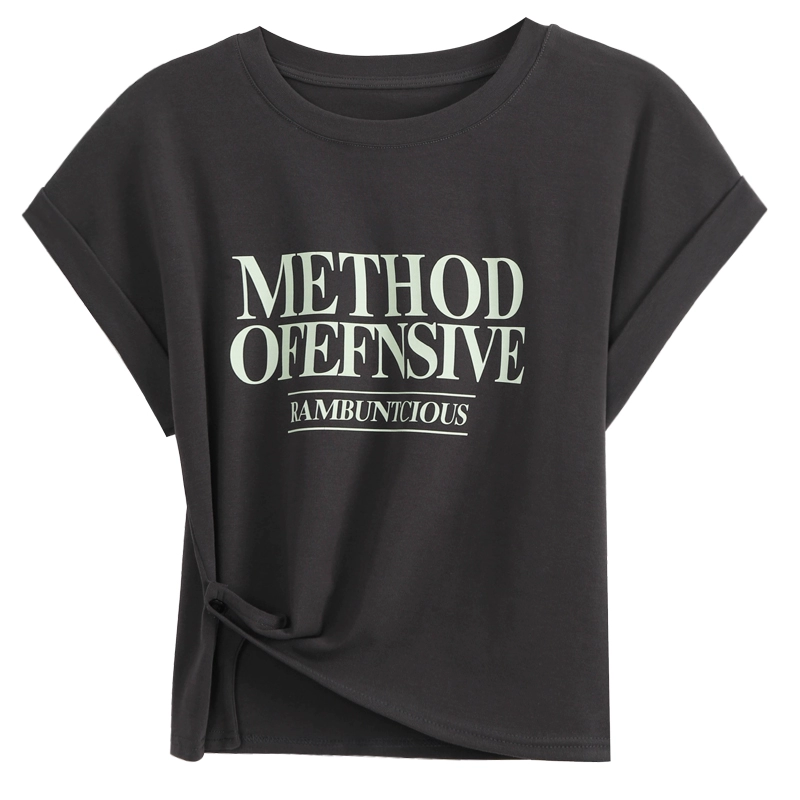 تيشيرت نسائي بأكمام قصيرة وكتف يمين مطبوع للتخسيس