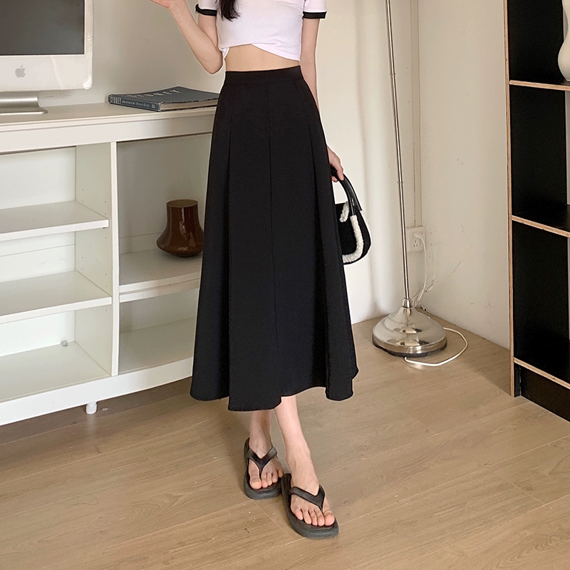 تنورة ربيعية أنيقة ذات ثنيات للتنحيف باللون الأسود