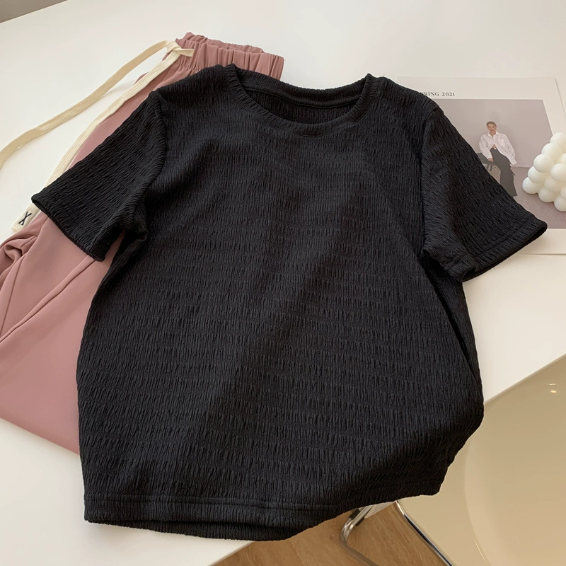 تيشيرت نسائي صيفي للتخسيس ذو لون خالص بأكمام قصيرة ذو شعبية كبيرة