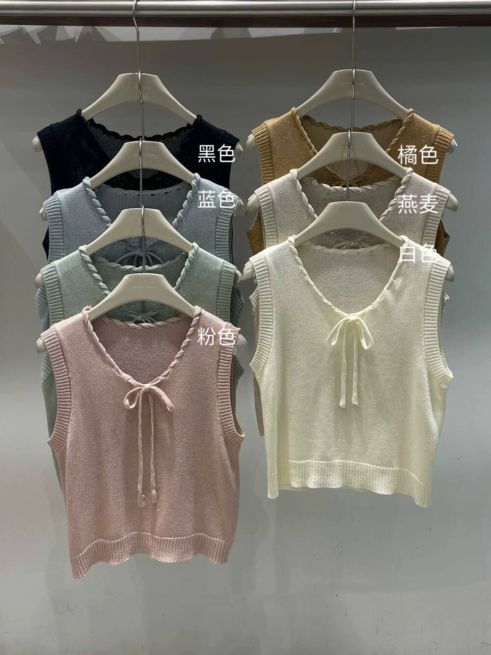سترة محبوكة فضفاضة بدون أكمام برقبة دائرية وأربطة من ثلاثة عشر صفًا