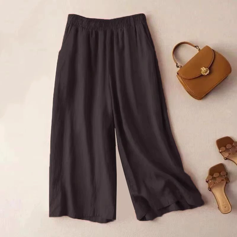 سراويل نسائية رفيعة من القطن الخالص والكتان كاجوال مقاس كبير