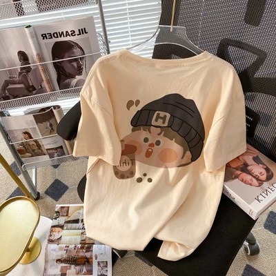 تي شيرت نسائي كبير الحجم يغطي البطن وأكمام قصيرة