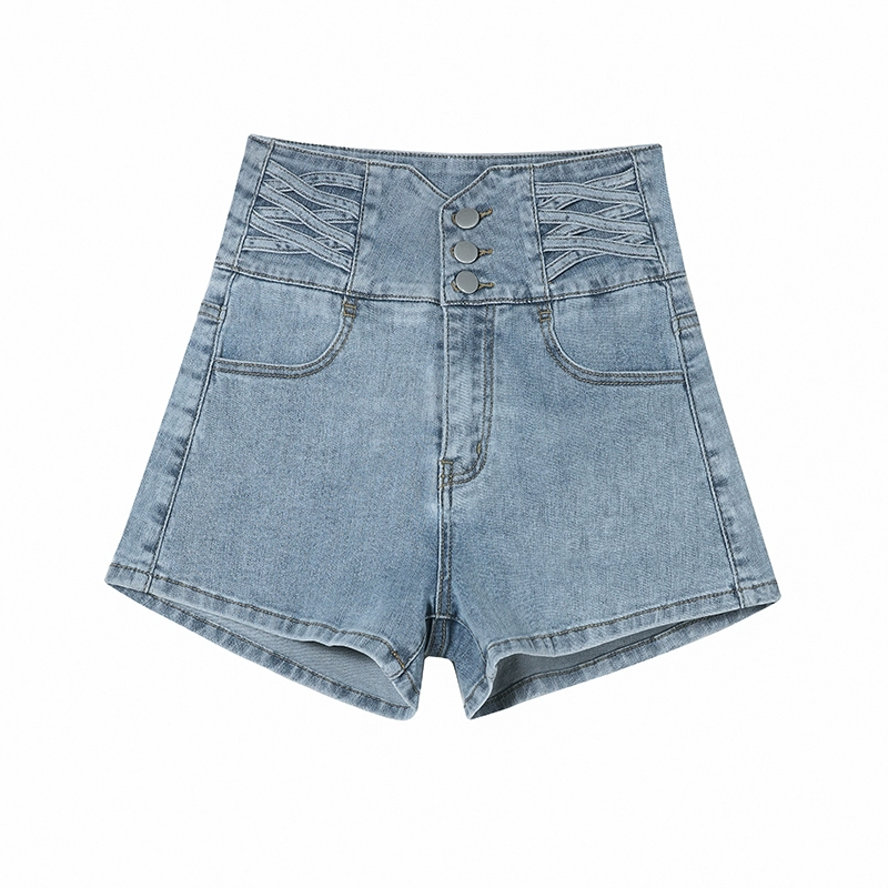 شورت جينز عالي الخصر يتحكم في البطن ويمتد على شكل خط