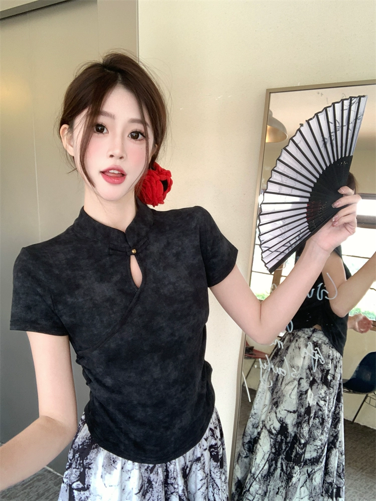 سليم الرجعية الصينية قصيرة الأكمام الصيف مشبك نمط جديد