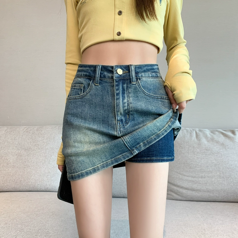 تنورة قصيرة من الدنيم عالية الخصر للنساء 2024 صيف جديد ريترو صغير مضاد للتعرض للتنحيف نصف الجسم يغطي الورك