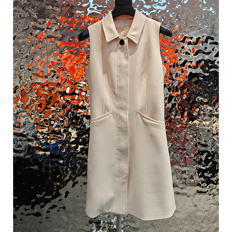 فستان أوروبي أنيق ذو طية صدر السترة بلون سادة