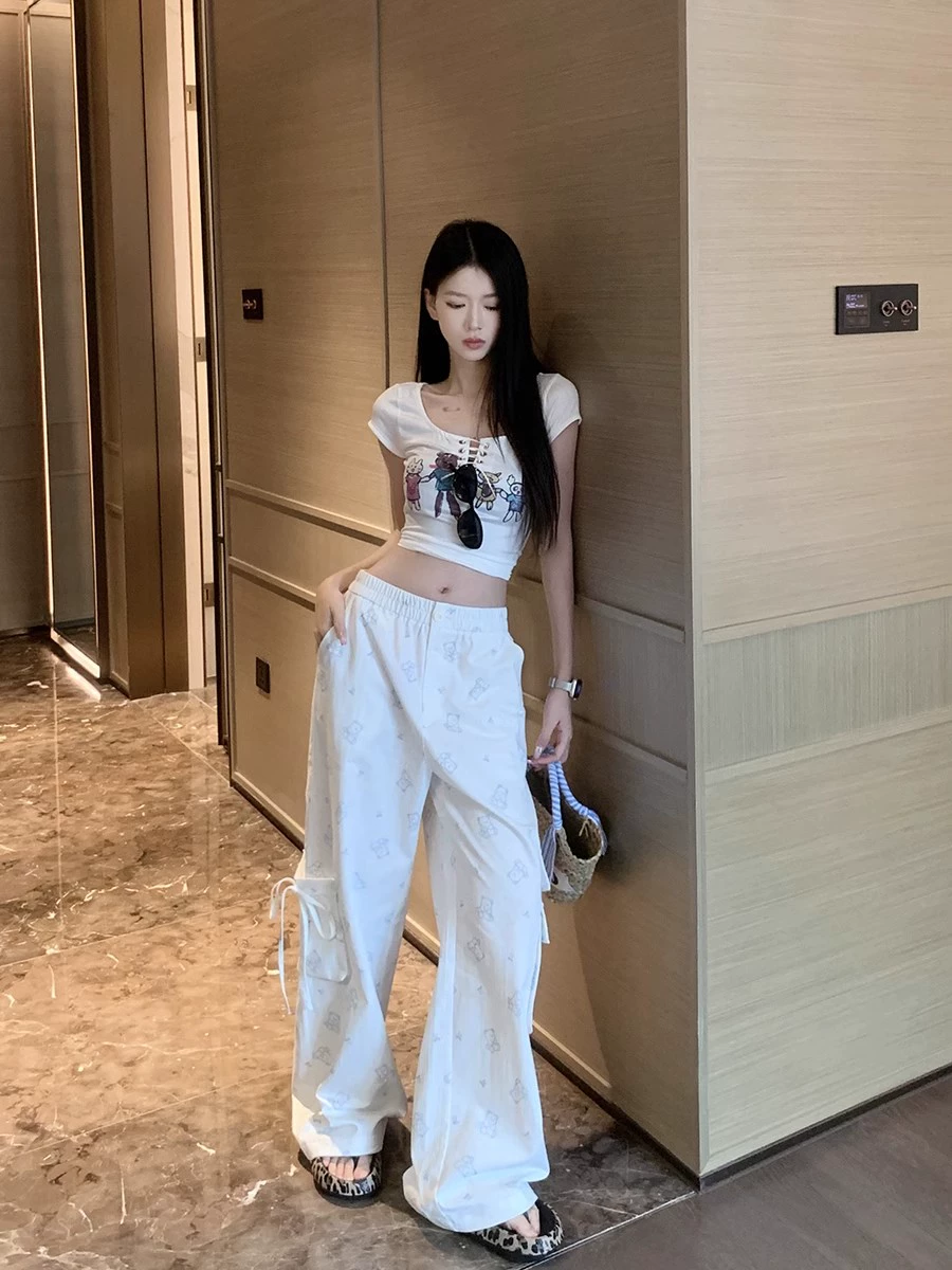 ملابس صيفية لطيفة على شكل دب وخصر مطاطي كاجوال