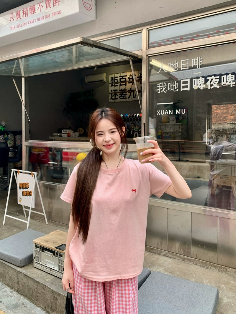 تي شيرت kumikumi كاجوال بسيط بطول الأرض بأكمام قصيرة