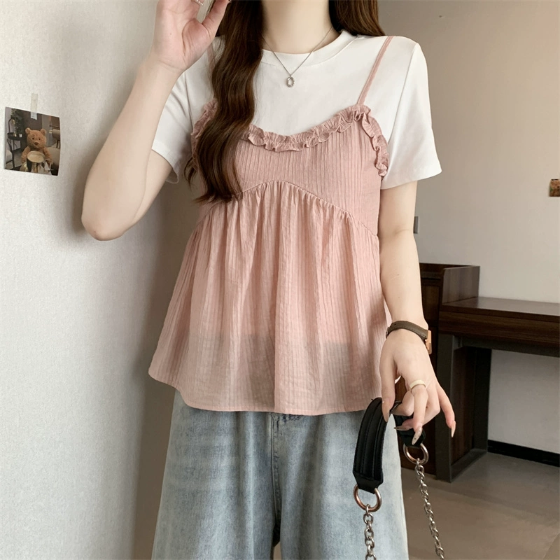 MM تيشيرت صيفي فضفاض مكون من قطعتين بأكمام قصيرة
