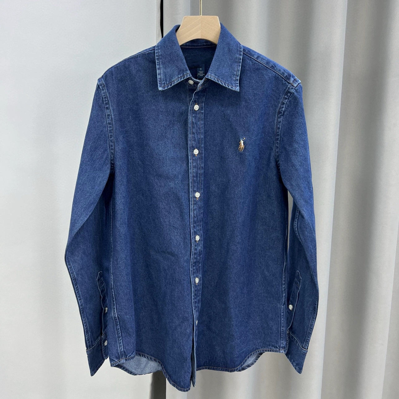 قميص جينز أزرق فضفاض ذو أكتاف مائلة