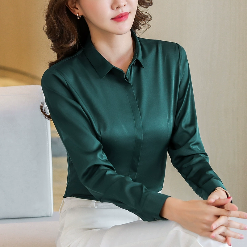 قميص شيفون نسائي بأزرار كلاسيكية بأكمام ثلاثة أرباع على الطراز الصيني