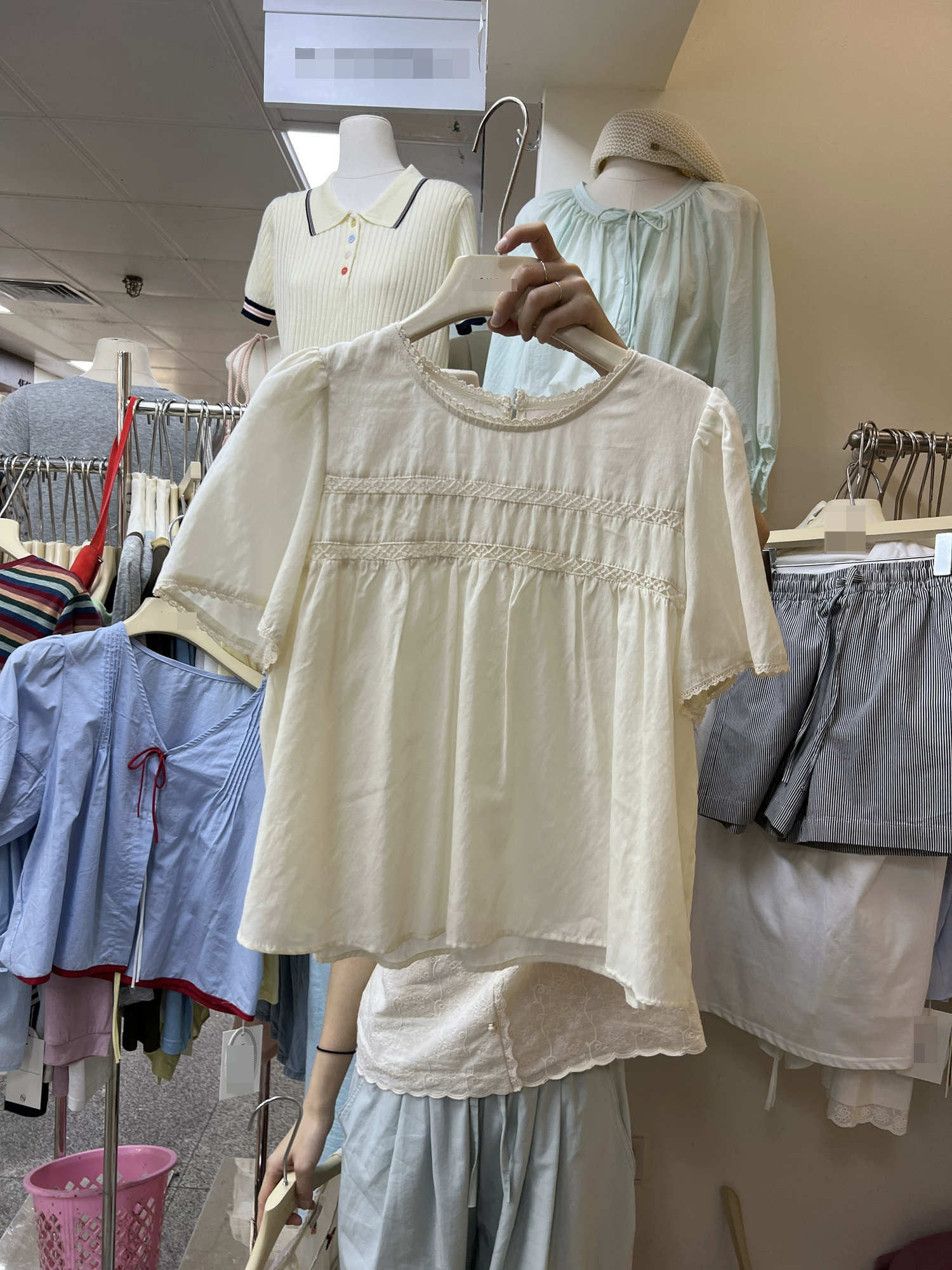 النسخة الكورية من ثلاثة عشر خطًا صيفيًا موضة جديدة مزاجية للغابات نمط رعوي مطرز بالزهور بلوزات صغيرة طازجة بأكمام قصيرة للنساء