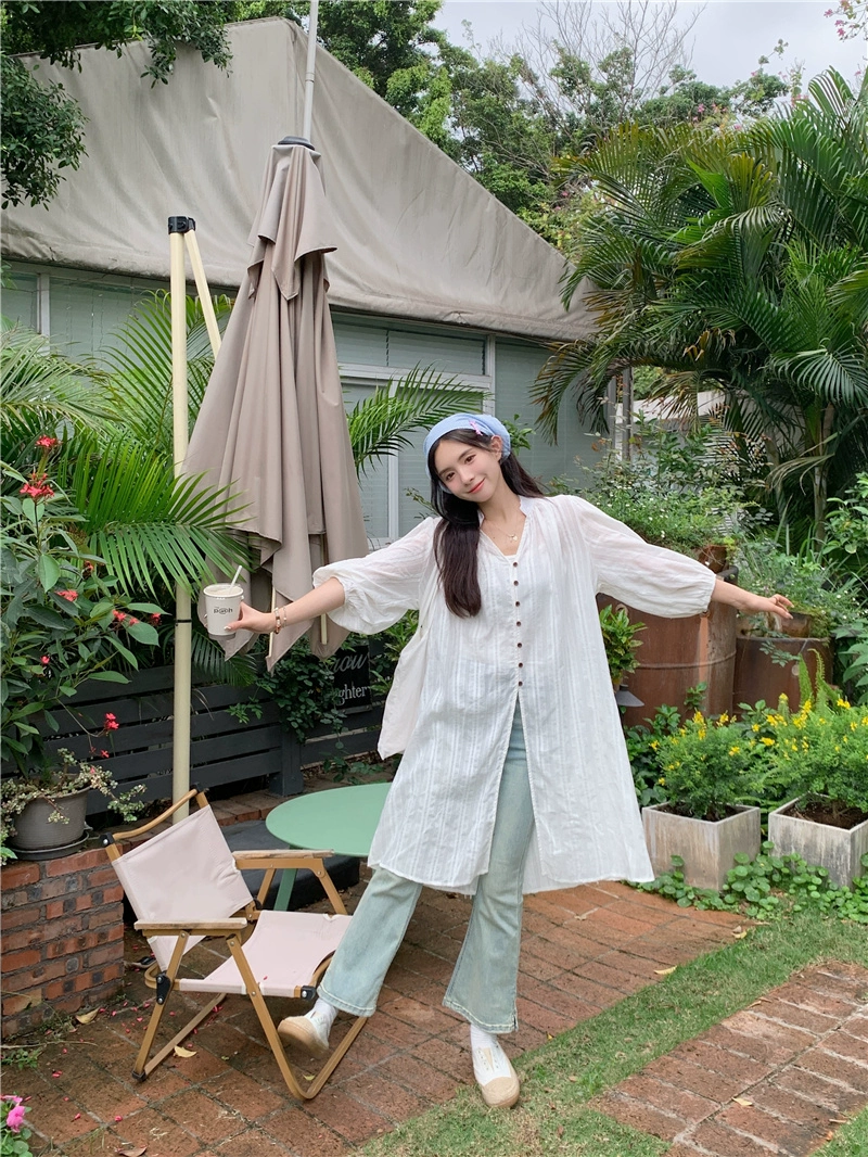 قميص طويل الأكمام فضفاض للحماية من الشمس ذو طبقات متوسطة