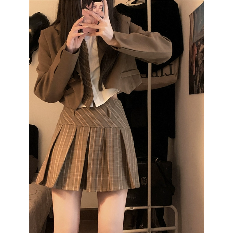 سترة ذات تنورة مطوية وأكمام طويلة على الطراز الكوري