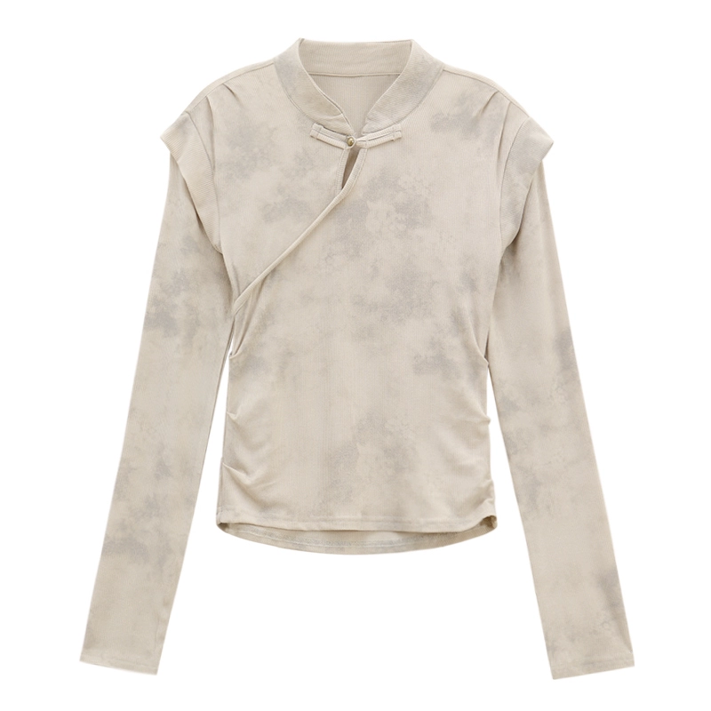 قميص قصير نحيف بتصميم قديم بأكمام طويلة مع زر