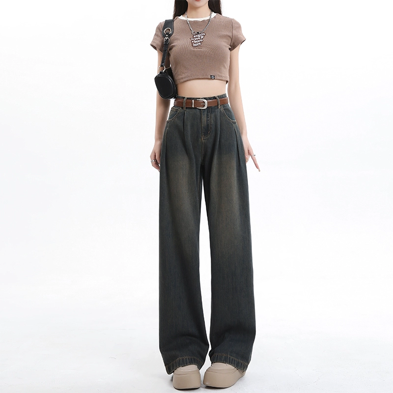 جينز ياماموتو ذو ثنيات عالية الخصر صيفي عتيق