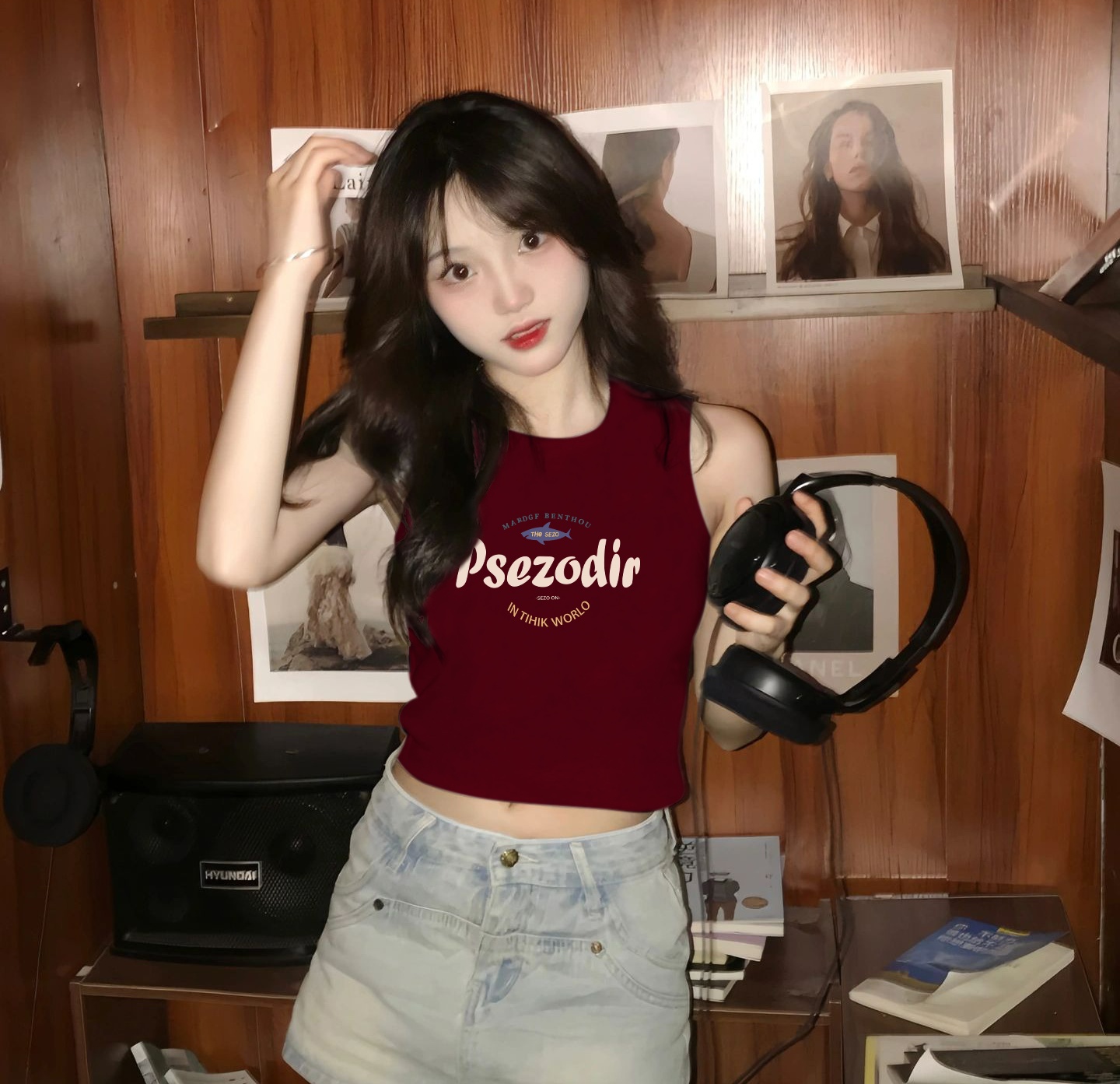 قميص ربيعي ضيق وحمالات رياضية على الطراز الكوري على شكل حرف I