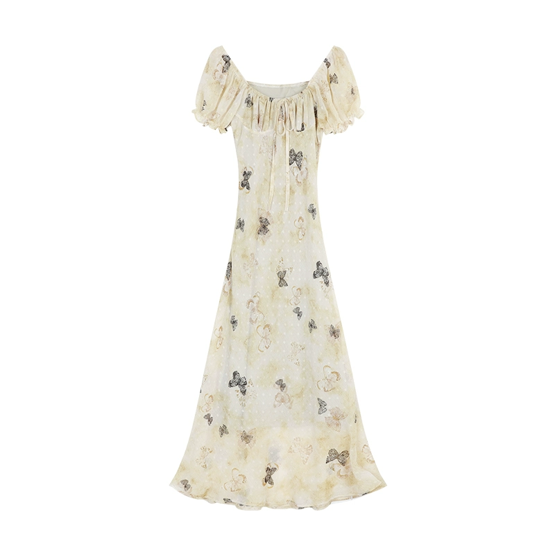 فستان صيفي جديد بقصة ضيقة على شكل فراشة ريترو