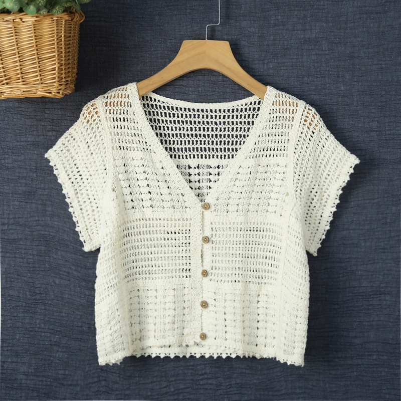 تي شيرت نسائي صيفي بدون أكتاف شبكي عالي الجودة بأكمام قصيرة