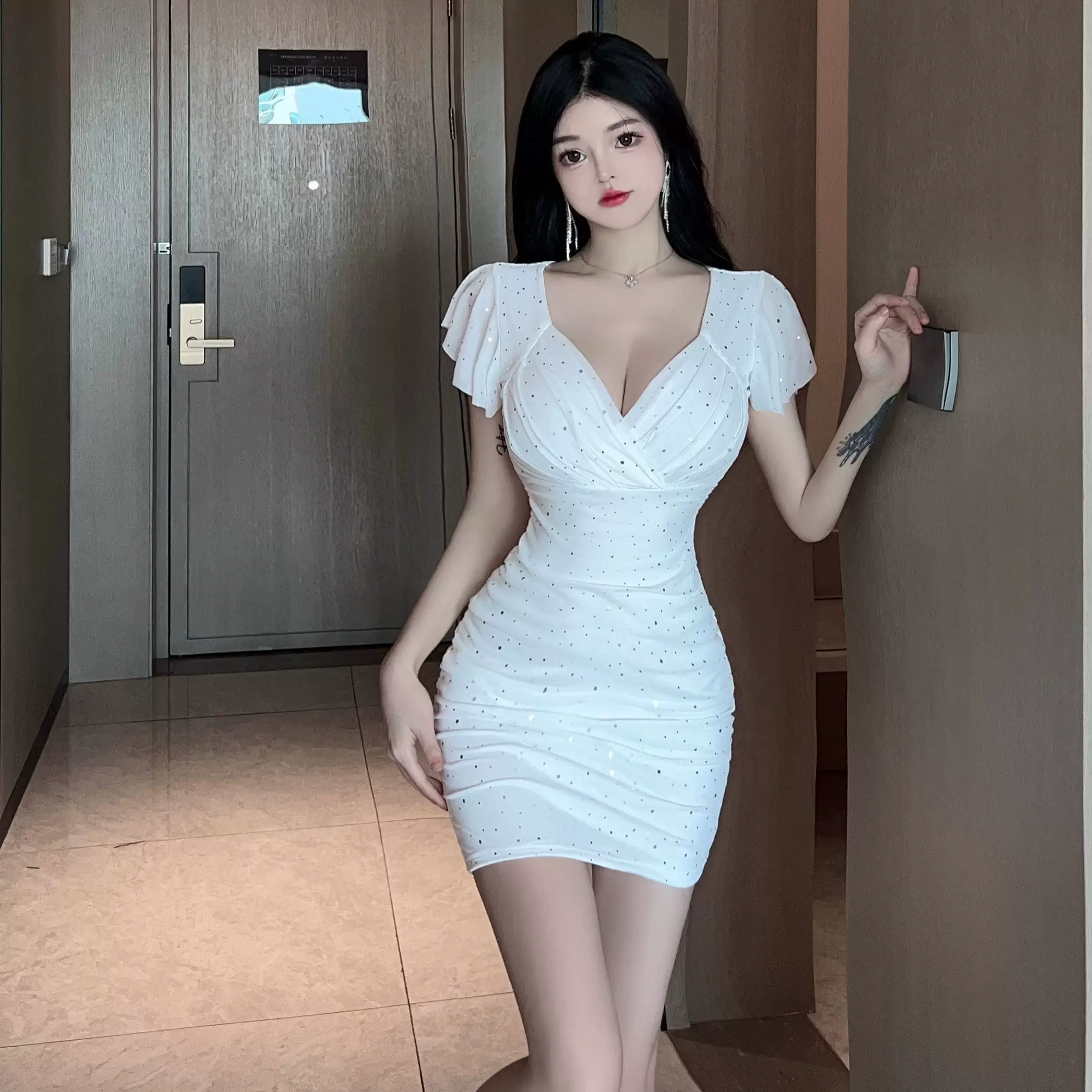 فستان صيفي جذاب برقبة على شكل حرف V وأكمام طائرة