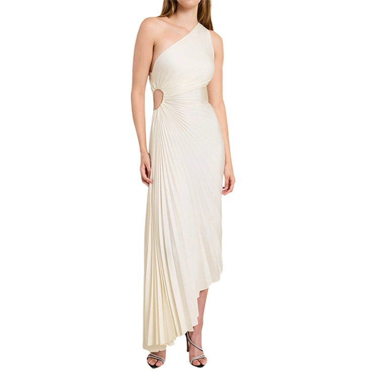 فستان شاطئ أصفر بكتف واحد على الموضة للنساء