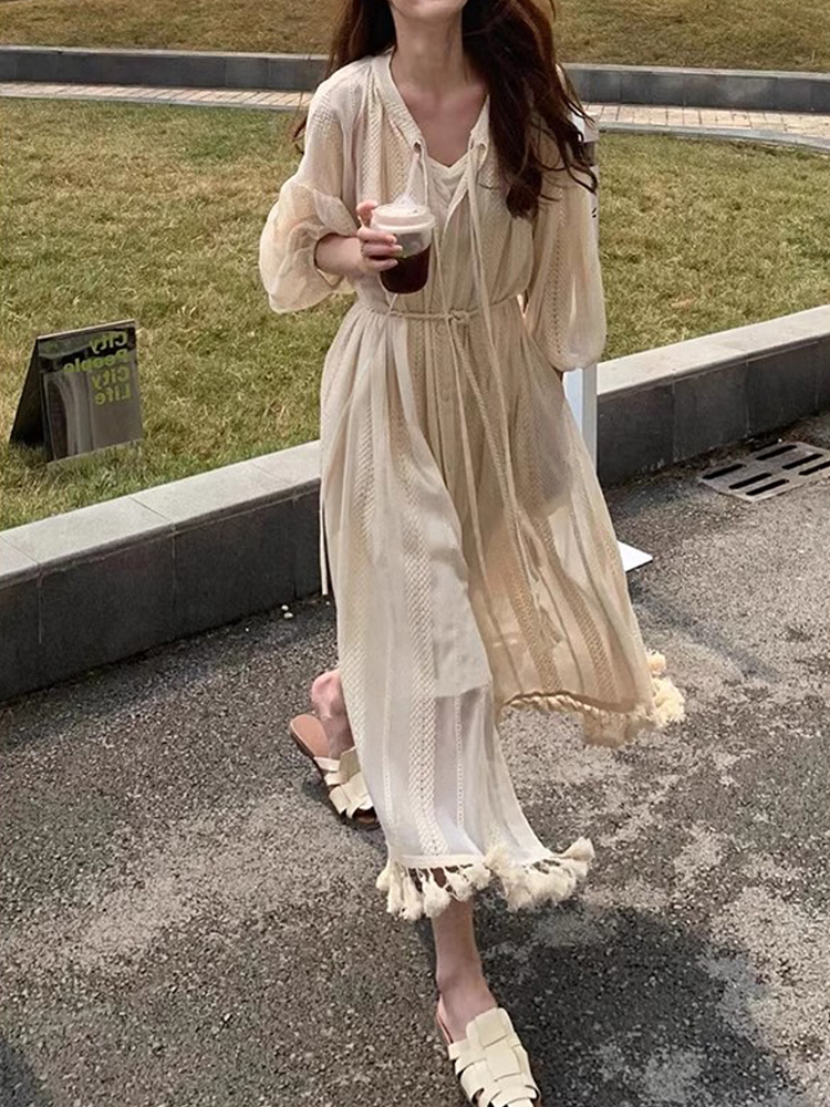 فستان نسائي للحماية من الشمس مع هودي وجيوب للشاطئ والمشي لمسافات طويلة.