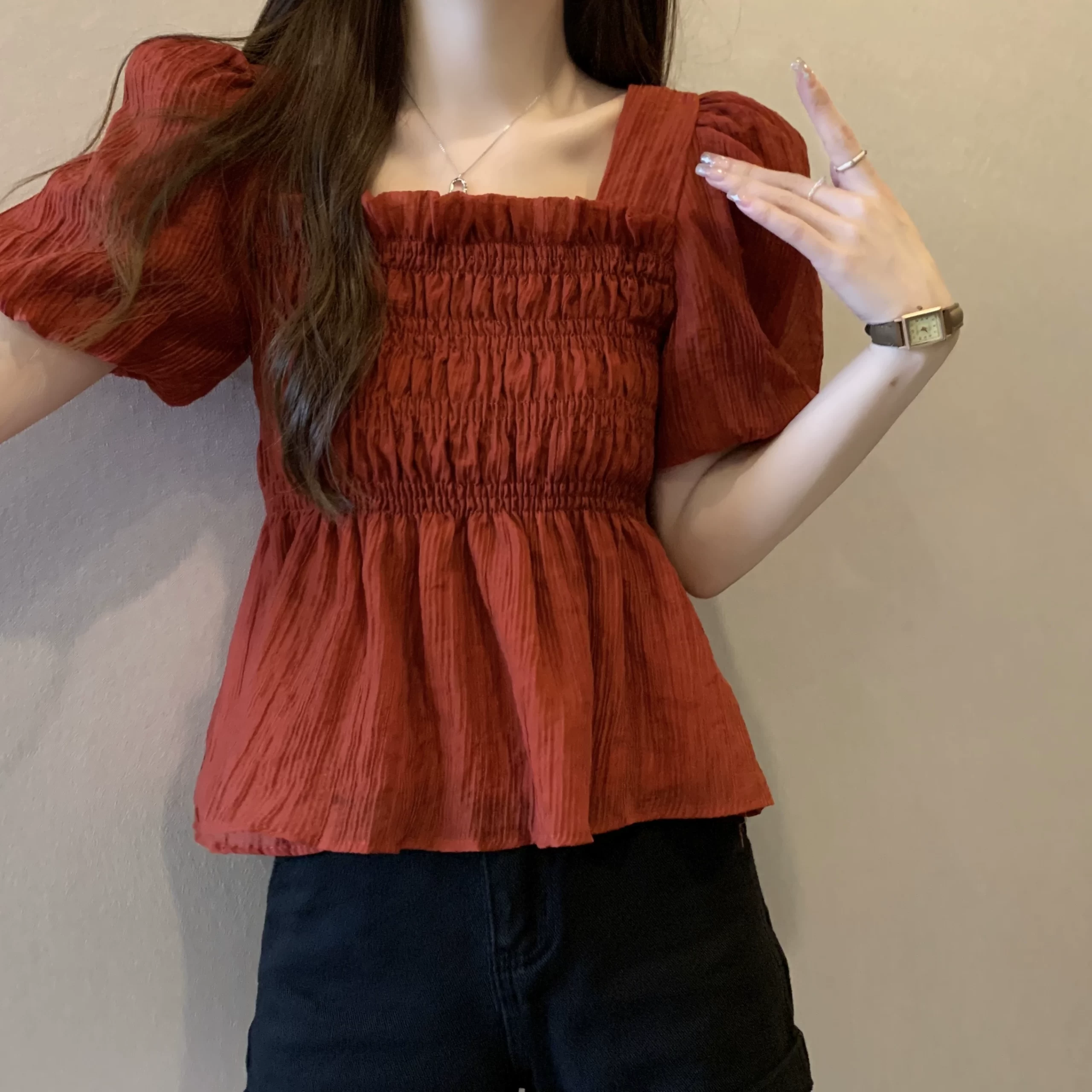 قميص تنحيف الخصر بياقة مربعة فرنسية مقاس كبير للنساء البدينات