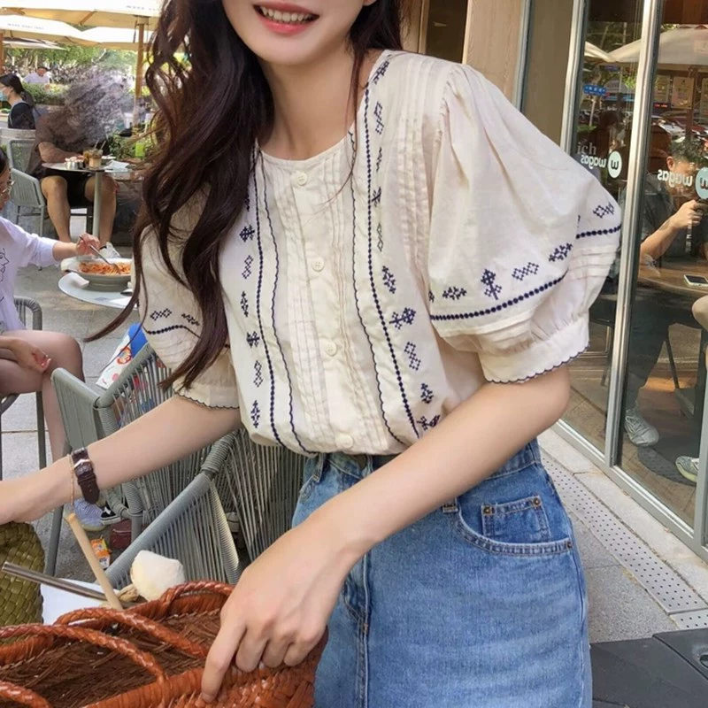 جزء علوي مطرز بأكمام قصيرة على الطراز العرقي القديم