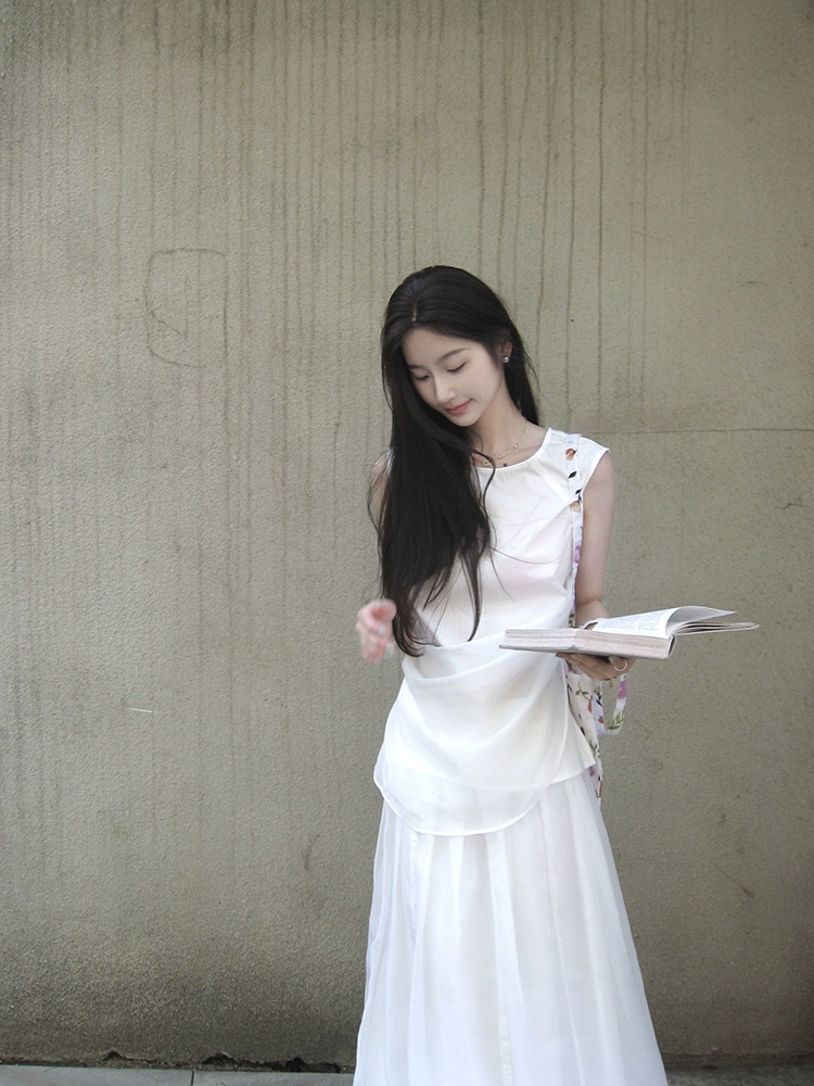 بلوزة فضفاضة ذات صدر واحد وأكمام قصيرة لتقليل العمر