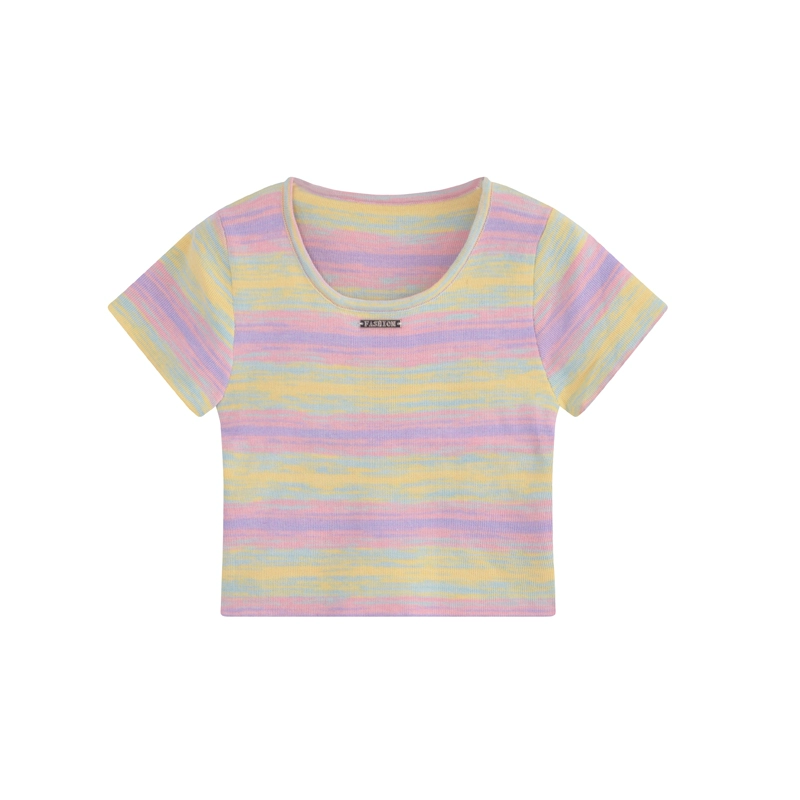 ملابس صيفية قصيرة الأكتاف سترة مخططة بألوان قوس قزح