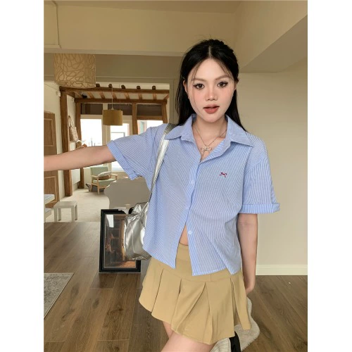 قميص بولو نسائي بأكمام قصيرة ومطرز بقصة ضيقة وشبكة طية صدر السترة