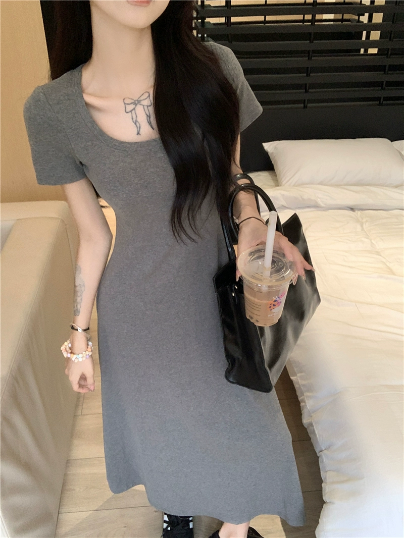 تنورة 2023 جديدة قصيرة الأكمام الإناث مزاجه آلهة مطوي سليم صالح حقيبة الموضة الورك العميق فستان بفتحة عنق على شكل v تنورة قصيرة
