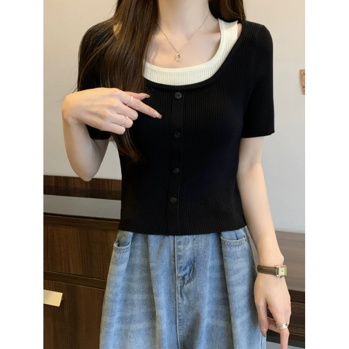 سترة صيفية أنيقة بأكمام قصيرة محبوكة من قطعتين