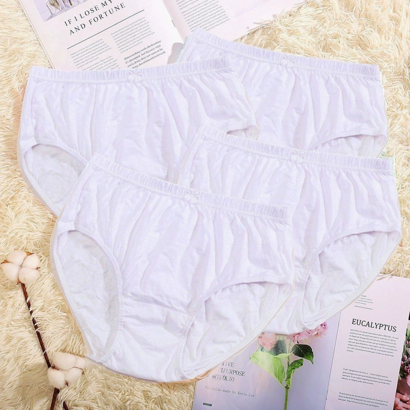 [5 قطع] ملابس داخلية نسائية صيفية رقيقة بيضاء من القطن الخالص مضادة للبكتيريا من أسفل للفتيات لطيف بناتي وردي قطن قابل للتنفس