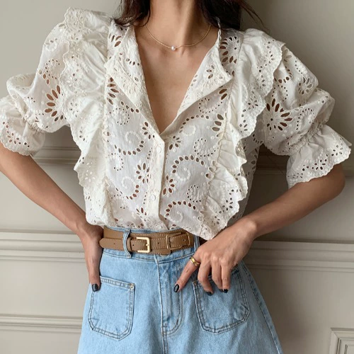 قميص كروشيه مجوف منسوج من الصناعة الثقيلة الكورية أنيق