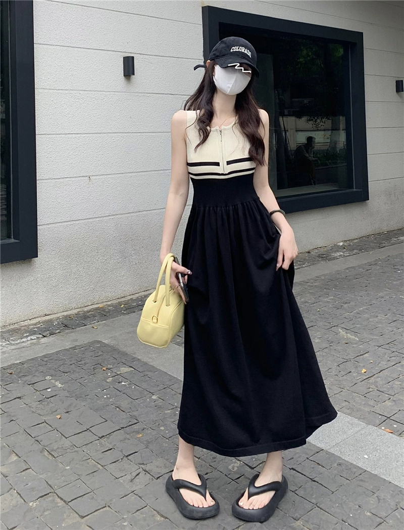 سترة تنورة على شكل حرف A بسحاب وبدون أكمام ربيعية مخططة