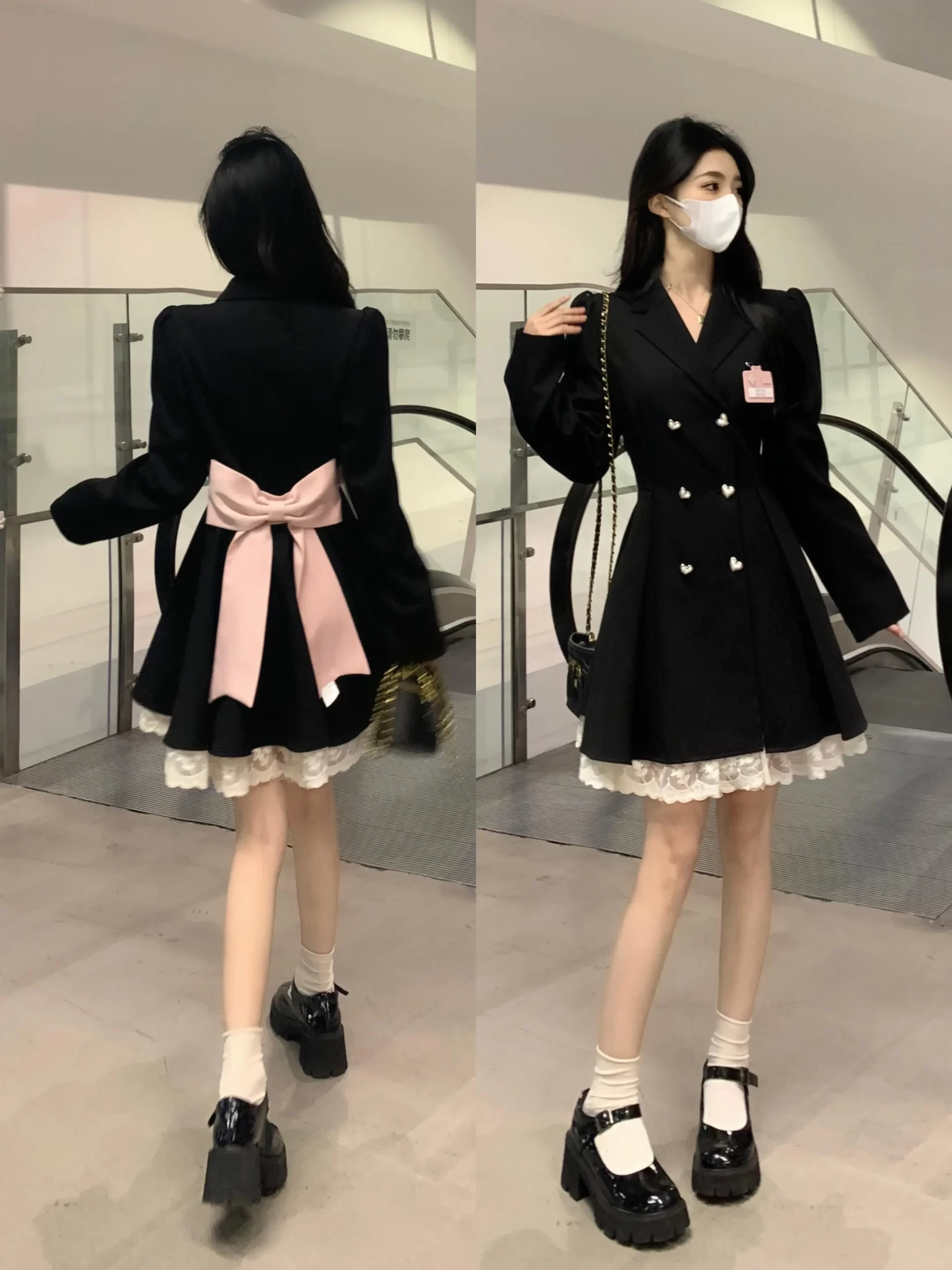 بدلة أزياء Xiaoxiangfeng ذات رقبة على شكل حرف V وصدر واحد وواسعة الساق