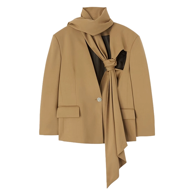 AMUU Beidao بلوزة أصلية ذات صدر واحد وأكمام طويلة مع رباط