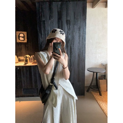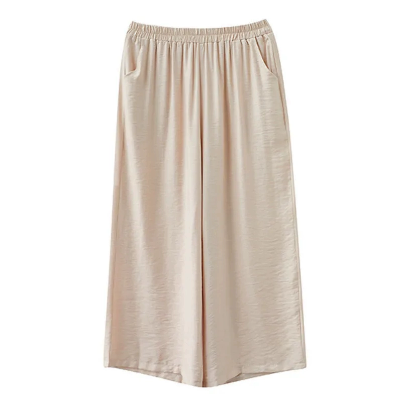 سراويل كورية راقية من الحرير الجليدي واسعة الساق لفنجان الشاي الهوائي للنساء صيفية فضفاضة شريط تنظيف للحماية من الشمس سراويل تقليدية مستقيمة