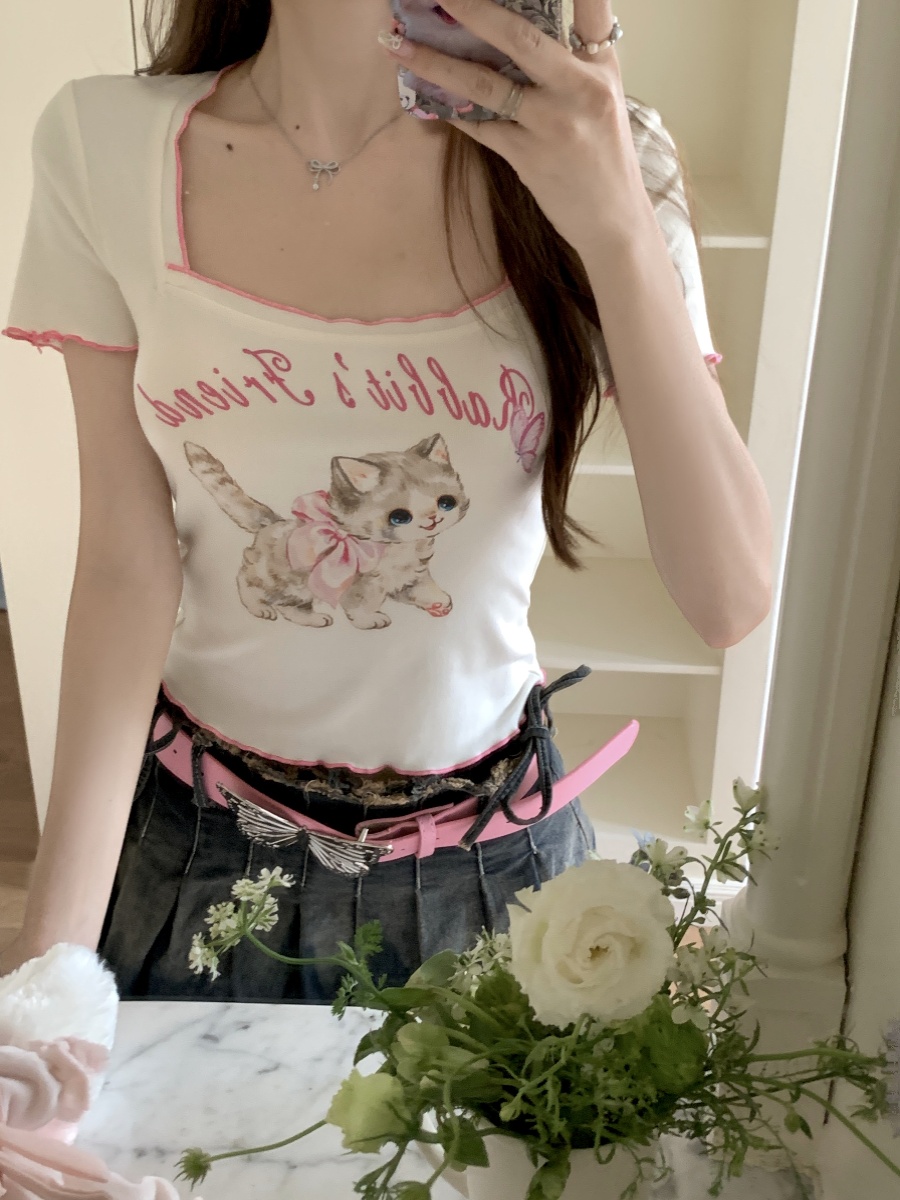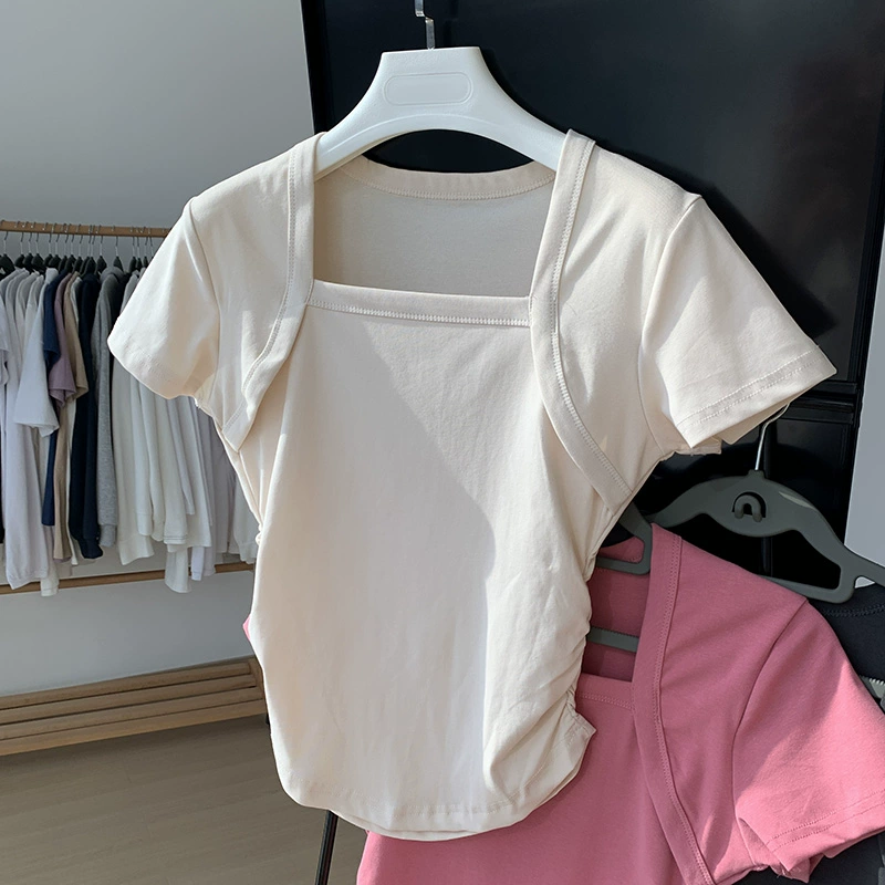 تي شيرت kumikumi صيفي ضيق بأكمام قصيرة