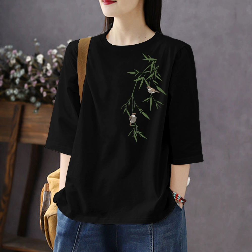 تي شيرت قطني أنيق فضفاض برقبة دائرية وأكمام قصيرة