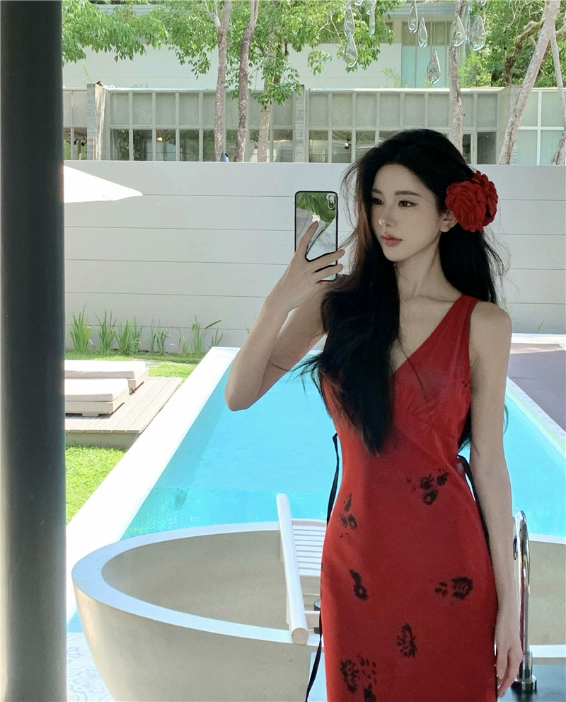 تنورة صيفية منعشة برقبة على شكل حرف V للحب الأول من الزهور