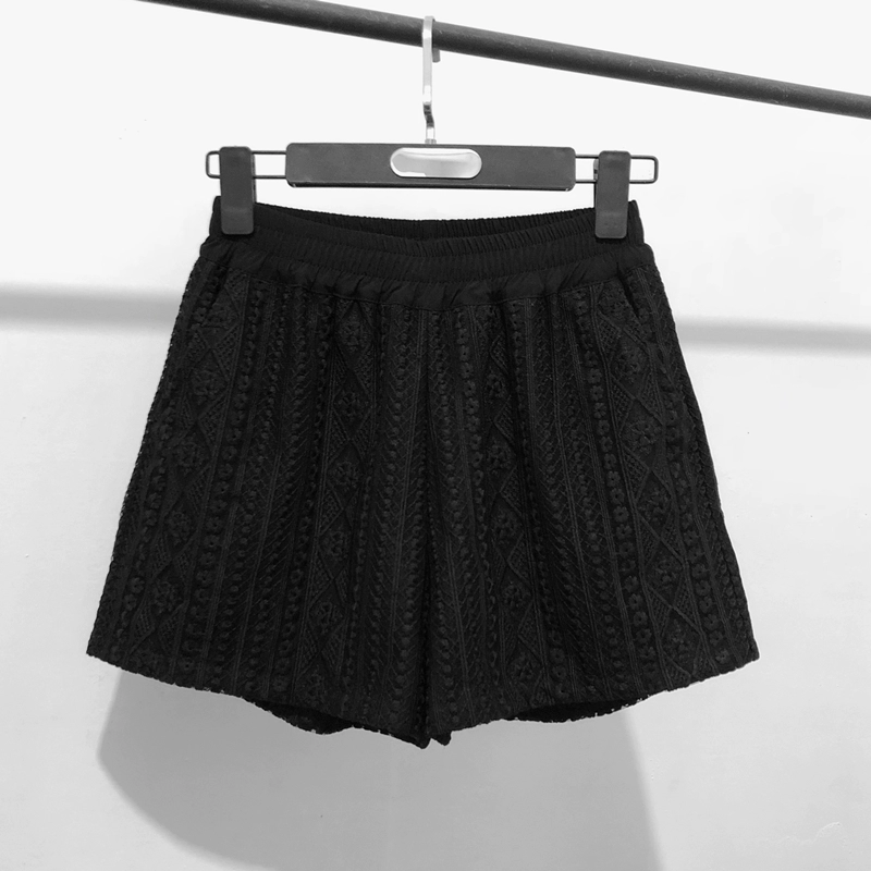 شورت من الدانتيل بخصر عالٍ، وشبكة سفلية رفيعة باللون البيج