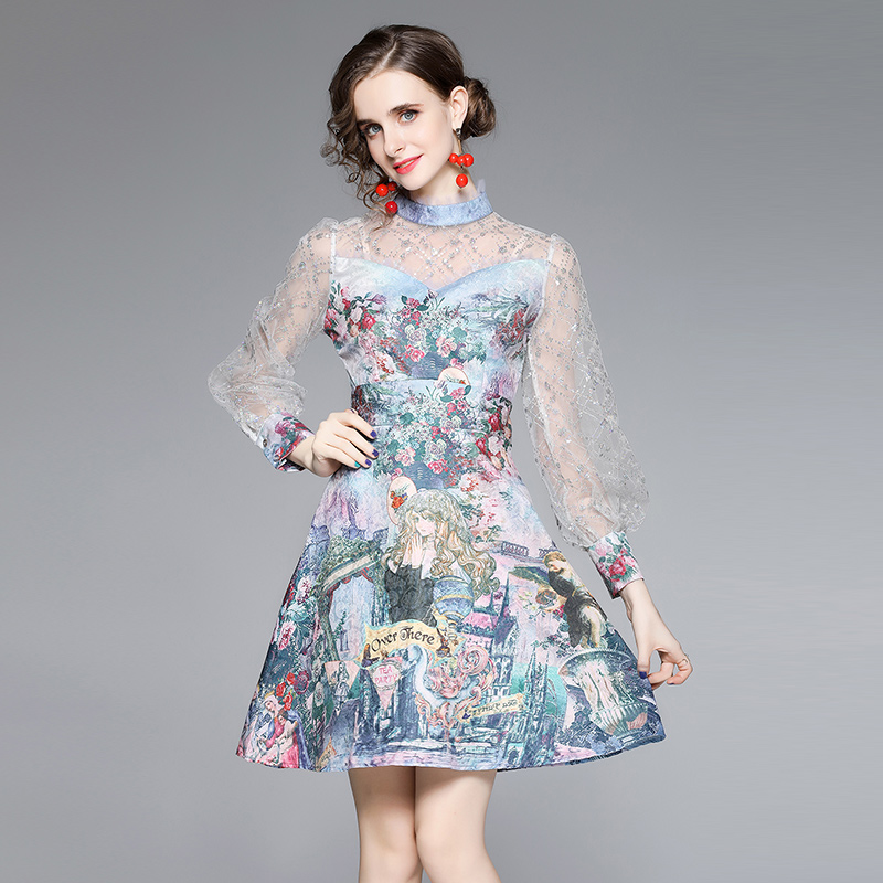 فستان نسائي صيفي فرنسي ذو مقاس كبير لاستراحة القهوة