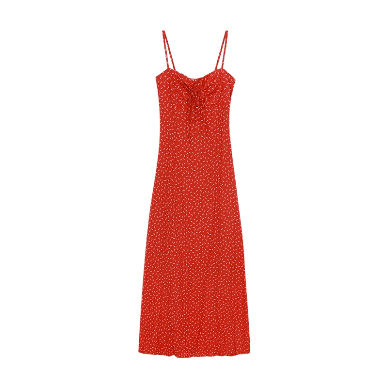 فستان حبل مثير مع حمالات زهور شبكية مائلة
